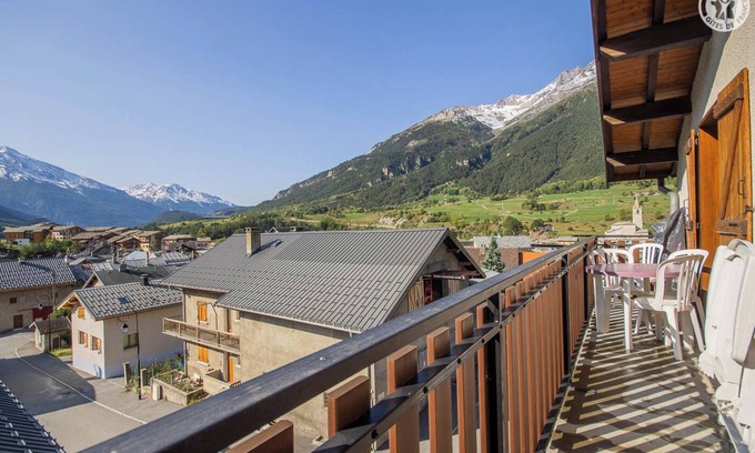 Gite in the owner's house. 2nd floor (access by a spiral staircase): living room with kitchen area, Netflix connected TV, 2 bedrooms (1 double bed / 2 single bunk beds), bathroom, separate WC, 1 bedroom opening onto the balcony of front (1 double bed) with private shower room and WC. Ski area Val Cenis Vanoise. Semi-detached house in the heart of the typical village of Haute Maurienne. Splendid view of the Arc valley and the Dent Parrachée. Pleasant and well equipped cottage. Numerous walks and hikes in the Parc de la Vanoise.
