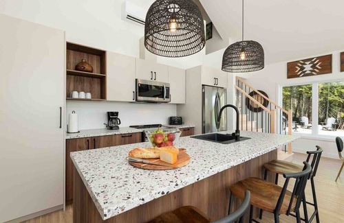 With its idyllic setting, comfortable accommodations, and access to a multitude of outdoor activities, this Nordic-style chalet offers the perfect retreat for an unforgettable getaway in Charlevoix.
