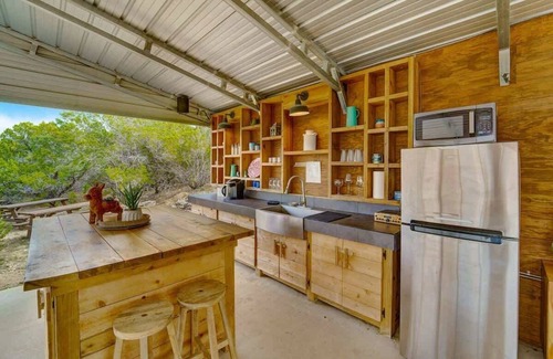 La Fortuna | 11-Acre Retreat + Pool & Tipis is located in Dripping Springs. La Fortuna | 11-Acre Retreat + Pool & Tipis provides accommodation, featuring Balcony/Terrace, Security/Safety, Wellness Facilities, among other amenities. This House features Balcony/Terrace, Security/Safety, Wellness Facilities, to make your stay a comfortable one.