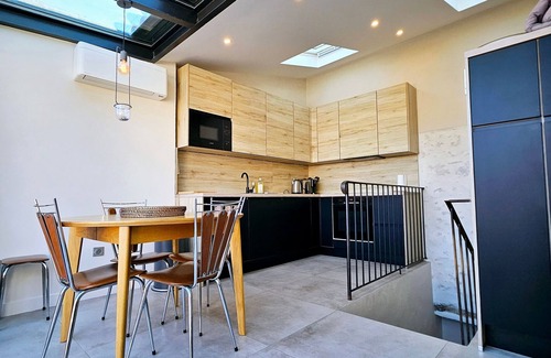 - A fully-equipped kitchen including electric kettle, oven, microwave, toaster, dishwasher, hob...