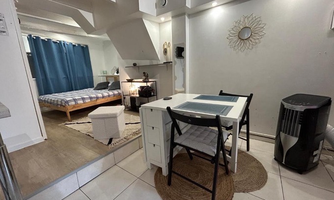 La Garde Studio centre historique, proche plage, climatisation, fibre offers accommodations in La Garde, 5.1 miles from Toulon Train Station and 5.3 miles from Zénith Oméga Toulon. The property is around 21 miles from Circuit Paul Ricard, 7.3 miles from Villa Noailles Art Centre, and 21 miles from La Favière. The accommodation offers airport transfers, while a bicycle rental service is also available. Offering a patio and city views, the apartment includes 1 bedroom, a living room, flat-screen TV, an equipped kitchen, and 1 bathroom with a walk-in shower. Towels and bed linen are offered in the apartment. For added privacy, the accommodation features a private entrance. A traditional restaurant can be found at the property, offering a child-friendly buffet. A children's playground is also available for guests at the apartment. Toulon - Hyeres Airport is 8.7 miles from the property.