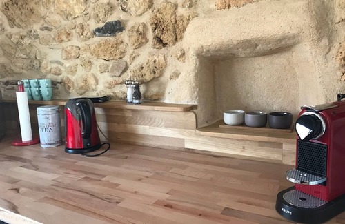 La Jolie Vigneronne is located in a quiet street near the church and half a minute's walk from the shops, bakers, antique and curiosity stores, bars , cafés and restaurants.