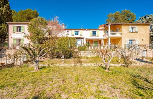 The Cocoonr/Book&Pay Agency offers you this charming air-conditioned house with a swimming pool in Pontevès, with a surface area of 400 m² and capacity for up to 15 guests. It comprises a lovely 85 m² living room (with fireplace), a fully equipped kitchen, six beautiful bedrooms, eight bathrooms and nine toilets. Sheets and towels are included, so all we need is you!