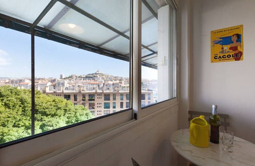 Very bright and carefully decorated, the flat is composed of a large and beautiful bedroom with a small sitting area, an independent kitchen opening onto a terrace with a view on the Old Port, Notre Dame de La Garde and other monuments such as the Théâtre de la Criée and Fort St Nicolas.
