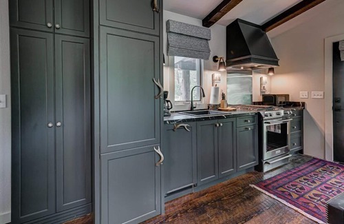 Named La Pequena Pecos, this modern rustic tiny house, professionally designed by Beverly Baribault Design Group, offers the quiet and serenity that is sometimes so hard to find. Six miles from downtown, everything is within reach but not too near to lose the peacefulness of this lovely house.