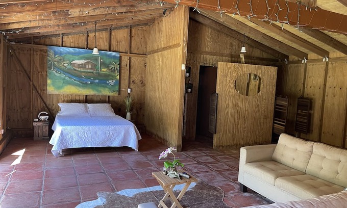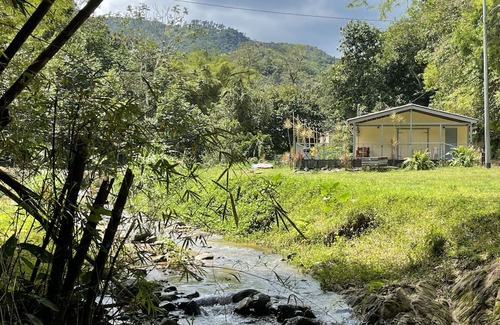 At this property, Relaxation is waiting for you at this delightful 2-bedroom cabin on the river of Guanico in Utuado. Nestled in the heart of nature, our cozy retreat offers a terrific escape from the hustle and bustle of everyday life. Wake up to the soothing sounds of the river, birds chirping and breathe in the fresh mountain air. Take a hike up river and you will be delighted to find a beautiful small waterfall perfect to enjoy all day. The cabin is off grid with a solar generator, solar panels, and mountain spring feed water. The cabin features a comfortable queen bed and 2 cozy twin beds, ensuring a restful night's sleep for all guests. The cabin features a heated outdoor shower and breathtaking views. With a well-equipped kitchen and bbq grill, you'll have everything you need for a fabulous stay. Make your holiday one for the books with a stay at our place.