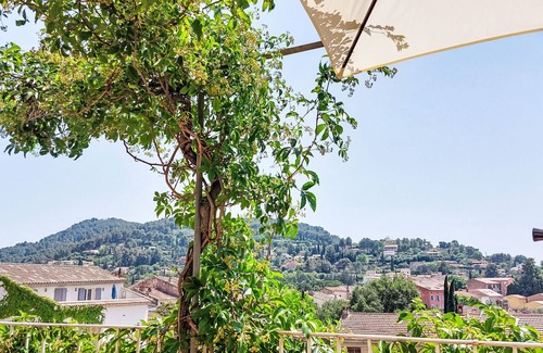 3-room apartment 100 m2 on 2nd floor. Spacious and bright, comfortable and beautiful furnishings: living/dining room with TV (flat screen). Exit to the terrace. 1 room with 1 french bed (160 cm, length 200 cm), fan. 1 room with 1 sofabed (140 cm, length 190 cm), fan. Kitchen (oven, dishwasher, 6 gas rings, toaster, kettle, freezer, electric coffee machine) with small dining table. Exit to the terrace. Shower, sep. WC. Electric heating. Terrace 25 m2. Terrace furniture, barbecue. Beautiful view of the mountains and the countryside. Facilities: washing machine. Internet (WiFi, free). Please note: non-smokers only. TV only FR. Smoke alarm. Offer by a private individual according to Art. 155, IV of CGI. 83016000081U4