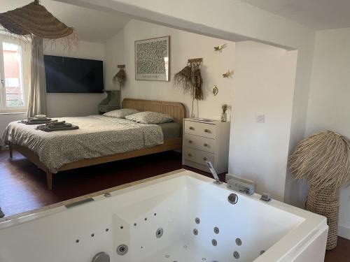 A recently renovated vacation home, La Recampado offers accommodations in Bormes-les-Mimosas. This 4-star vacation home offers free Wifi. Outdoor seating is also available at the vacation home. The air-conditioned vacation home consists of 1 bedroom, a living room, a fully equipped kitchen with a dishwasher and a coffee machine, and 1 bathroom with a hot tub and bathrobes. Towels and bed linen are featured in the vacation home. Additional in-room amenities include wine or champagne. The breakfast offers à la carte, continental options and fresh pastries and juice are being served. Chateau de Grimaud is 18 miles from La Recampado, while Le Pont des Fées is 18 miles away. Toulon - Hyeres Airport is 13 miles from the property.