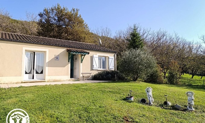 In a quiet environment, surrounded by green hills, La Roseraie is a pleasant contemporary house in the heart of the Dordogne Valley. With its enclosed park planted with trees and flowers in front of the house, its 2 terraces and its pleasant, bright, functional interior where nothing is missing...La Roseraie has everything to please! This gite 3 kms from the Dordogne river ideal for swimming, fishing and canoeing, and about 20 km from Rocamadour is a very pleasant place to stay to discover the many riches of this valley.House adjoining the owners' house and separated by 2 garages (one for the owners, the other for holidaymakers). House of 70m² with all the rooms on the ground floor: large living room (sofa bed with extra bed), with a dining area and a kitchenette. 2 bedrooms each with a 140 bed and built-in cupboard (possibility to add an extra bed in 90 in a bedroom with supplement to be seen with the owner), bathroom with bath and shower, separate toilet. Electric floor heating, 2 terraces,