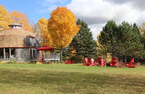 La Rotonde - Self-sufficient circular log cabin is located in Mauricie. La Rotonde - Self-sufficient circular log cabin provides accommodation, featuring Bedding/Linens, Child Friendly, Kitchen, among other amenities. This Cabin features Bedding/Linens, Child Friendly, Kitchen, to make your stay a comfortable one.