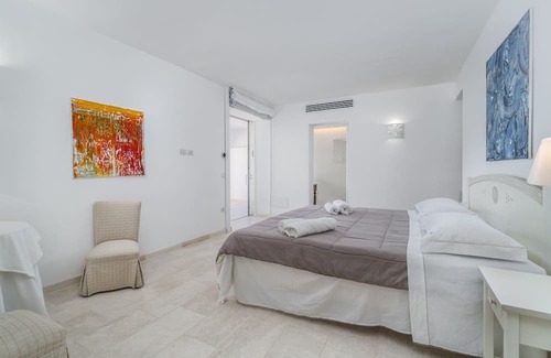 You can find La Scilla Bianca sitting in the Pantogia Hills, overlooking the beautiful bay of Costa Smeralda, on Sardinia’s north coast, set in the turquoise waters of the Mediterranean Sea. The nearest international airport is only thirty kilometres away in Olbia, a scenic drive to your holiday home. The villa is near the hot sports holiday resort of Porto Cervo, where you will find provisions for your holiday, lots of welcoming cafes, bars, and restaurants, and exclusive shopping and spas.
