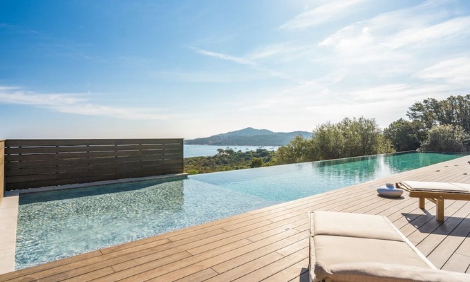 Stay in the sweeping sea view La Scilla Bianca, overlooking the exclusive Costa Smeralda on the north coast of the beguiling island of Sardinia. This two-storey, detached retreat has private lawned gardens, a spacious terrace, and an inviting infinity swimming pool, creating an ideal setting for an Italian escape. The villa has five spacious double bedrooms and can comfortably accommodate up to ten guests, perfect for a large family holiday or a group of friends’ get-together.