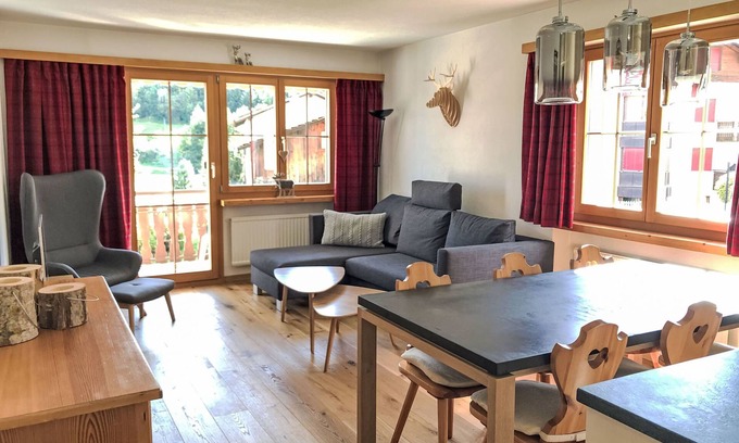 "La Siala Apt.4", 4-room apartment 60 m2 on 1st floor. Renovated in 2016, comfortable and cosy furnishings: living/dining room with cable TV (flat screen). Exit to the balcony. 1 double bedroom. 1 room with 1 x 2 bunk beds. 1 room with 1 double sofabed. Open kitchen (oven, dishwasher, 4 ceramic glass hob hotplates, electric coffee machine, Capsules for coffee machine (Nespresso)). Shower/WC, sep. WC. Parquet floors. Balcony 8 m2, south facing position. Balcony furniture. Beautiful view of the mountains, the valley and the countryside. Facilities: hair dryer. Internet (WiFi, free). Please note: non-smokers only.