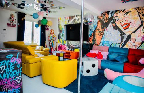 La Villa des Secrets is a well-rounded recently renovated country house in Boissets. The property features a spa and wellness center, barbecue, and an indoor play area. A hot tub and a bicycle rental service are available for guests. The accommodation offers a sauna, free Wifi throughout the property, and free shuttle service. Offering a terrace and garden views, the country house includes 5 bedrooms, a living room, flat-screen TV, an equipped kitchen, and 2 bathrooms with a walk-in shower and a hot tub. Towels and bed linen are featured in the country house. The property has an outdoor dining area. Guests at the country house can enjoy a continental breakfast. There is an on-site coffee shop. Guests at La Villa des Secrets can enjoy walking tours nearby, or make the most of the garden. Chapelle Royale St. Louis is 17 miles from the accommodation, while Joel Cauchon Stadium is 17 miles away. Paris - Orly Airport is 43 miles from the property.