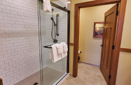 Every two-bedroom suite in the Lodge building was designed to integrate with nature and offers gorgeous views of Table Rock Lake. When staying at the Lodge, be sure to visit Guest Services during your stay and take the grand staircase that leads downstairs to a spectacular lobby. Here, you will find floor-to-ceiling windows and a spectacular 3 1/2-story fireplace. Stunning wood trim with metal accents brings the outside in. Everything here is on a grand scale including a majestic chandelier and striking grandfather clock.