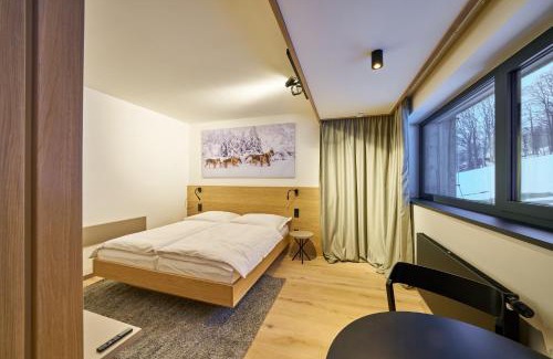 Featuring garden views, Labská 20 - apartmánový dům in Špindlerův Mlýn provides accommodations, a garden, a terrace, and a shared lounge. Private parking is available on site at this recently renovated property. The apartment features mountain views, a children's playground, a 24-hour front desk, and free Wifi is available throughout the property. All self-catered units feature parquet floors and are equipped with a satellite flat-screen TV, a safety deposit box, an equipped kitchen with a dishwasher, and a private bathroom with shower. A microwave, a fridge, and stovetop are also offered, as well as a coffee machine and a kettle. At the apartment complex, units include bed linen and towels. Guests at the apartment will be able to enjoy activities in and around Špindlerův Mlýn, like hiking. Skiing and cycling can be enjoyed nearby, while ski-to-door access and ski storage space are also available on-site. Bus Stop Strážné is 8.5 miles from Labská 20 - apartmánový dům, while Szklarki Waterfall is 26 miles from the property. Pardubice Airport is 66 miles away.
