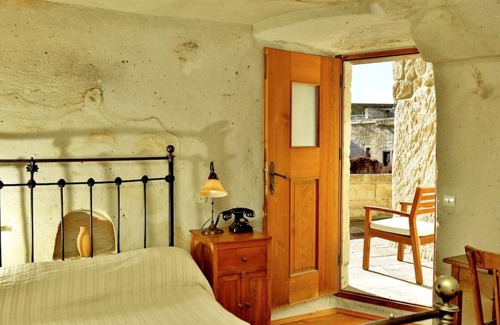 Several couples or family & friends will enjoy the space, the cave-&-stone-house ambience, the modern conveniences, the cool & quiet. The golden volcanic tufa, with traditional stonework details, surrounds you. Windows let light into every room, some with fine views. Niches & closets carved into the cave walls provide storage for clothes, books and travel stuff. Several small writing desks are ready for your laptop. All of its rooms may be entered via a private corridor/ hallway, but they have separate outside entrances as well.
