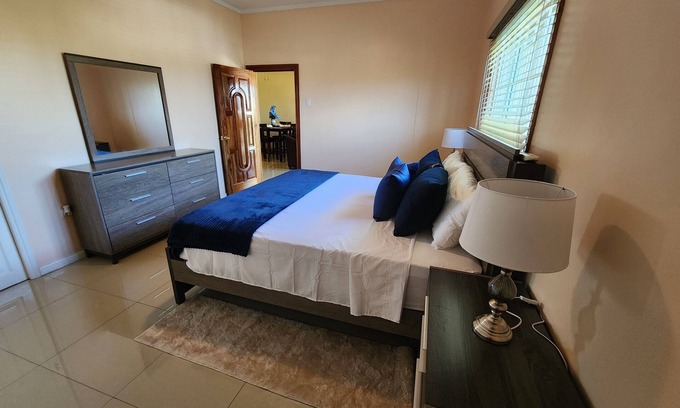 An ideal setting to indulge in luxury and make lifelong memories is provided by this secure apartment. This stylish two-bedroom apartment has space for up to 4 guests. The Sovereign Centre and Bob Marley Museum is nearby in the Kingston 6 area. Ideal for small families, independent travelers, couples, business travelers, and vacationers, seeking a comfortable atmosphere.