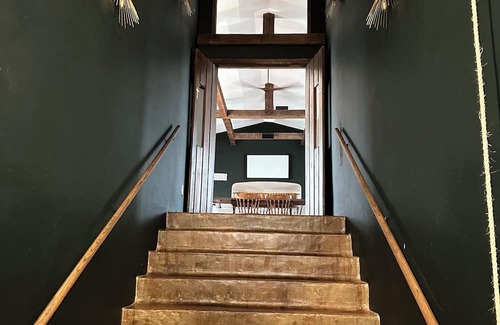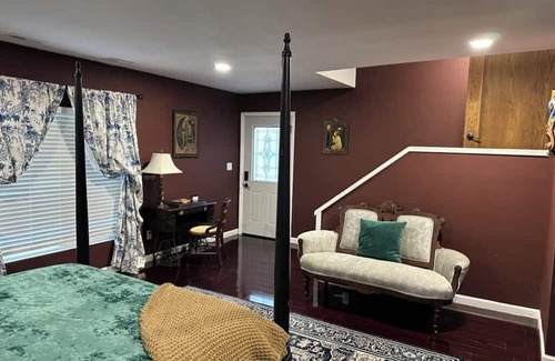 Hope Chapel includes 3 separate and private bedrooms including the velvet room - featuring a king-sized antique bed with a hand carved frame and a stunning 7’ tall antique wardrobe just off of the main chapel hall; the Red Room - an oversized queen suite with an original rosewood and marble top dresser and men’s dressing stand with a private bathroom and separate entrance attached; the Green room - formerly part of the priests’ quarters, is a quaint room with a full sized bed and a private bathroom and separate entrance.