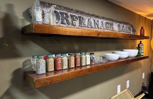 At over 170 years old, our church has no lack in character, but that doesn’t mean you will forsake modern amenities or luxury. Our church features high-speed fiber internet, white noise machines in every bedroom, a hidden laundry room, central heating and cooling, and more. Take some time for yourself and slip into a bath in our oversized two-person soaking tub inside the heart-stopping main bathroom where you will find a giant glass walk-in shower and a repurposed solid oak antique buffet-turned-vanity.