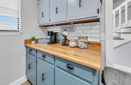 The living room flows into the dining room with an open floor plan filled with relaxing colors and natural light. The living room is equipped with a large Smart TV, recliner, and an oversized sofa and chair. The dining Table seats 6 and the bar seats 3. The fully equipped kitchen, which was completely updated in February 2024, has all new appliances with an amazing coffee and tea bar, complete with Keurig K-cups, tea and the essentials. The well-appointed kitchen has everything you need, including a dishwasher, microwave, toaster, and all necessary dinnerware and cookware (pots, plates, bowls, silverware, wine glasses, drinking glasses, coffee cups).