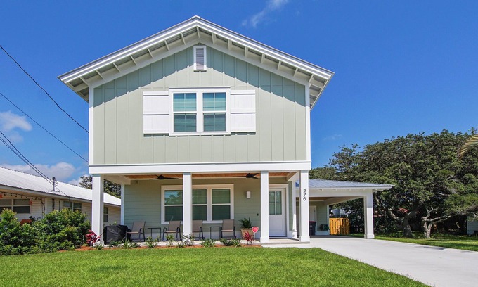 Laguna Dreamin' is centrally located on the west end of Panama City Beach in the Laguna Beach area. This family-friendly 2 floor, 4 bedroom, 4 bath house is spacious, comfortable, and a 5 minute walk to the beach. Laguna Dreamin' also has a PRIVATE POOL. Three bathrooms have walking showers and one bathroom (main floor) has a tub/shower combination. The bathroom on the main floor is also just inside the back entrance from the pool area. The main floor has a spacious living/dining and kitchen featuring an open floor plan. The washer and dryer and a side entrance are on the south side of the home. There is a separate bunk room (for children only) and a bathroom just across a small hallway near the rear of the house. There is a sofa bed in the family room. A spacious stairway leads to the second floor. The first bedroom on the 2nd floor has 2 twin beds, TV, closet, and bathroom with walk in shower. The next bedroom is the master bedroom featuring a King bed, TV, walk in closet and bathroom with walk in shower. The third bedroom on the second floor had a Queen bed, TV, closet and bathroom with walk in shower. Laguna Dreamin' is a 5 minute walk to the world's most beautiful beaches at beach entrance #84 at the intersection of Front Beach Road and Twin Lakes Drive. The beautiful back yard with privacy fence has a cozy fire pit/grill area with seating. The pool area has a picnic tablelounge chairs and chairs in the pool. There is also a private outdoor shower in the pool area. The hone has an EV charger. We have a ring doorbell at the front entrance and a camera at the back door toward the pool and grill area. These cameras are for security purposes.