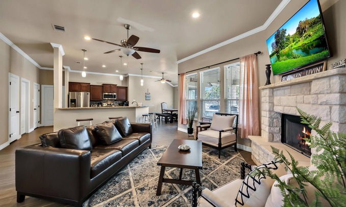 Bring the whole family to this great place with lots of room for fun. Located just steps away from Stillhouse Hollow Lake. Enjoy the sparkling pool, the cozy hot tub and the other gathering places for fun and leisure. Likewise, the inside of the home features an open concept and a garage converted into a game room, all perfect for entertaining. Every guest is sure to have great fun and make many memories. This is the best place to play hard and relax even harder!