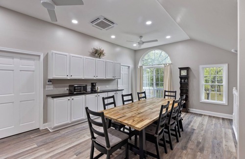 -Large kitchen with table seating for 8. Leather sectional couch, TV, breakfast nook seating for 4.