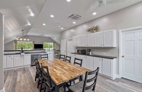 This lakefront property provides a perfect spot for groups of friends or families. The Guesthouse has 4 bedrooms, 2 full baths, and sleeps 12.
