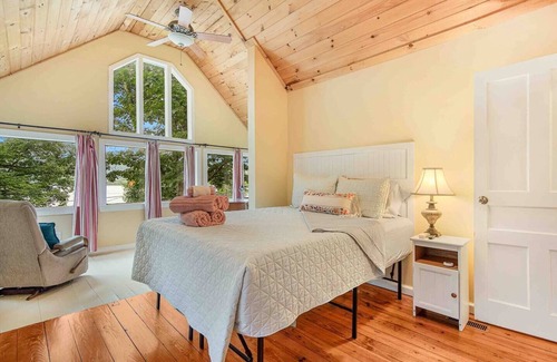 This is an adorable cottage across the street from Canadarago Lake. There is lake access across the street and 2 kayaks are provided for your enjoyment. There is a large deck with outdoor seating and a grill. There are 3 bedrooms each with a queen bed (one is an open loft area so does have 1 missing wall and not 100% private but a room divider is available for privacy). There is a shower downstairs and a tub/shower upstairs. All bedrooms are upstairs. The dedicated work area is inside one of the bedrooms. There is a spacious dining area in the home and comfy sectional sofa to relax after being out in the village or on the lake all day. Internet is provided as is streaming services on the TV’s (one in every bedroom!!). Want to unplug? Board games also provided, along with a fire pit in the back yard.