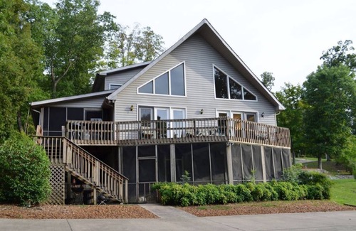 There is a lovely screened porch on the side of the home that is always shaded with a table and chairs for dining al fresco! There is also a deck with a table and chairs and a gas grill perfect for gazing on the lake while grilling. You will have complete access to one slip in our community dock. However, the dock is not equipped with running water or electricity. There is also a firepit located down by the driveway.