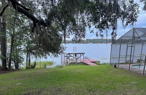 Charming cabin on Lake Broward. Get away from the crowds on the peaceful, private spring-fed lake! Watch the sunrise on the dock with a cup of coffee. Bring your canoes, paddle boards, and fishing gear. After a day on the lake, take a dip in the saltwater pool, grill out on the patio, and relax by the outdoor fire pit.