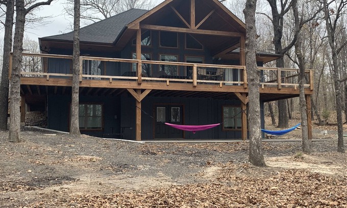 Newly built in 2020. Huge kitchen for entertaining. Five traditional bedrooms and a bunkroom perfect for kids. Large outdoor entertaining area with plenty of parking. Does not map correctly, this property is dam side of the lake between Texanna and Porum. Water access by a foot path to a quiet cove perfect for skiing.