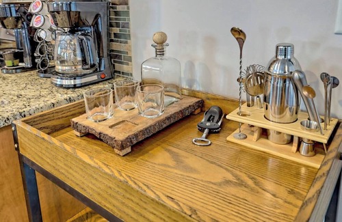 There is a charcoal grill and a firepit available. Keurig coffee maker. To be on the safe side, please bring your own coffee essentials, charcoal and firewood.