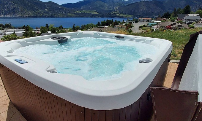 Year-round hot tub while enjoying a panoramic view of Lake Chelan during the day and stargazing at night.