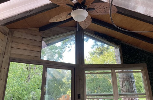 The Pinecone Treehouse is nestled in a tall Pine Tree , the diverse wildlife, the secluded romantic setting with 2 person jacuzzi tub, stocked kichenette, led lighting, lake and creek fishing, kayaking, swimming, walking trail, firepit, .... your refreshing retreat in nature's beauty awaits!