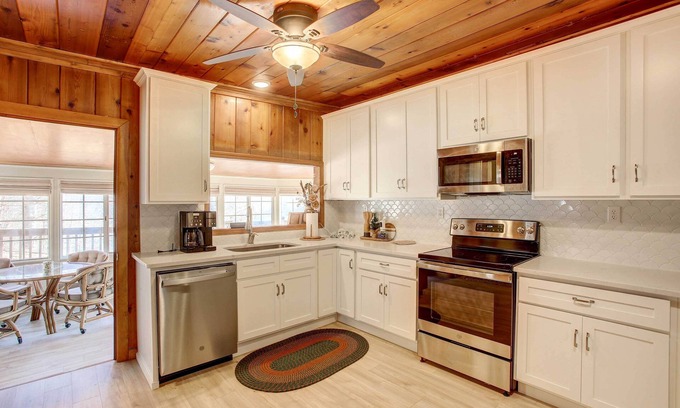 Sip your morning coffee in the sunroom, enjoy stunning views of Lake Cumberland, and spend quality time with loved ones on the water when you stay at this quaint Jamestown getaway. Stroll the short walking path to the water’s edge where you can swim and fish on-site or venture out to a nearby marina for boating adventures! After a day of fun in the sun, return to this 3-bedroom, 2-bath vacation rental to relax on the peaceful wraparound deck or watch a family favorite in the living room.