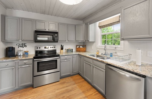 Fast and reliable Wi-Fi. 4k Roku sticks for streaming options. Plenty of cell service. Tons of board games to enjoy, including brand new Cornhole boards located in the building beside the hot tub. A full size pool table is located in the basement. Kitchen is stocked with everything you would need to prepare a meal, (including a Keurig) and each bathroom is stocked with a start up amount of toilet paper (larger groups will likely need to stop and get more). Washer and dryer located on main level.