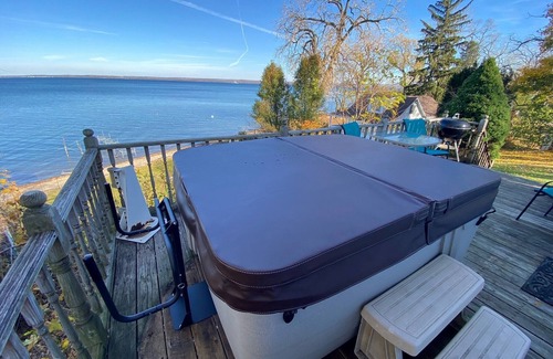 Relax in this beautifully decorated lake front cottage on Seneca Lake's west side with brand new floors in the kitchen and bathroom, and brand new beds in the bedrooms (2020). Unlike most Seneca Lake rentals, you will have over 100 Feet of private, level lake frontage, sitting on almost an acre of land at the end of a private drive. Looking out at the lake from the back deck you will notice that you are at the widest point of Seneca Lake. The cottage is only minutes from most of the region’s premier wineries and a few blocks from the Seneca/Keuka Outlet Trail. You are also a short drive from the towns of Penn Yan, Watkins Glen, Geneva, Hammondsport and Seneca Falls. This cottage is immaculately clean - sleeps 6, and includes a lakeside hot tub, a dock, and 100 ft of level lake frontage. The kitchen and bathroom are meticulously maintained and the entire cottage was completely redecorated just a few years ago (new paint, decor etc.). The cottage is pet friendly and serves as either the perfect romantic honeymoon getaway or family lake vacation. We are the highest rated accommodation in this area and have earned the Awarded for Excellence every year.
