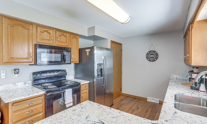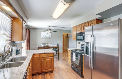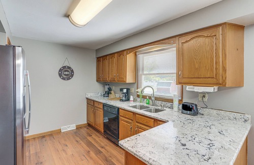 Enjoy all the comforts of home at this ranch-style vacation rental in Amherst, OH! The 3-bedroom, 2-bath house resides in a quiet neighborhood 3 miles from Lake Erie and boasts essentials like Smart TVs in each room, a kitchen overlooking the deck and backyard, and a patio where you can have fun with the whole family. Fill your days with swimming, boating, and fishing, and top off your stay with a 30-mile day trip to Cedar Point. On-the-water adventure awaits!