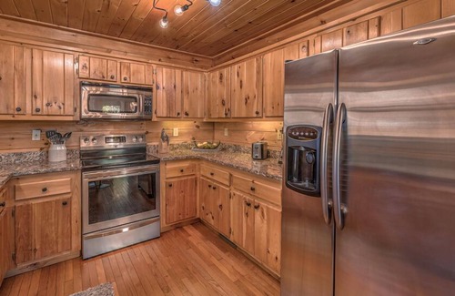 From the lovely family room to the fully stocked kitchen (complete with great appliances and everything the family chef might need to whip up a meal), no expense was spared to ensure your vacation is perfect. Enjoy a cozy fire on the family room's wood burning fireplace while watching your favorite shows and movies. You'll rest easy during your vacation! And you can bring your furry friend along (up to two!) Lake Escape is dog-friendly; you'll appreciate the level playing areas outside for you and your pup and the easy walk from the cabin to the private dock.