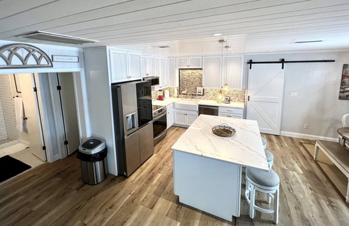 Open and light space that is french style cottage design that exudes comfort. Comfortable furniture that helps you get relaxed. A large tv if movies are your thing. Open dining area and kitchen counter for family and one large open area for entertaining, games, and fun gathering together. Rooms are all appointed with french decor and accents that are decorated for comfort. Queen in the master sleeps 2, 2 twin beds in the other bedroom. Large Bonus Room has 2 Queen Beds sleeps 2 per bed with a Spa Style Bathroom with a luxury soak tub and rain shower - all completely new!