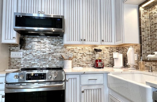 This is a lovely cottage-style home with the best views on the lake. It has a fully equipped kitchen including a microwave, toaster, two coffee makers (Keurig and drip), and plenty of dishes, pots, and pans. We are upgrading by end of May, the entire kitchen to a gourmet top-of-the-line kitchen and separate island, new ambiance, and chef-quality cooking lighting and tools. Hence the price of the house will reflect the high-end luxury home on the lake with all the amenities you need!