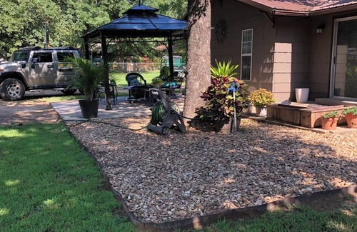We have a very nice 3 bedroom 2 bath home next to its own beach. House has a pool and sleeps 6-8 people.....we call it Canadian River Outdoors....walk the beach and look for arrowheads, sunbathe, fish, or use it as home base for boating and fishing...located close to town where you can enjoy food at local lake restaurants, attend concerts and enjoy local entertainment, We really love to stay at home and enjoy the beach and lay by the pool. The home has a nice kitchen and living area up stairs, and also has a second TV/living area downstairs in the master bedroom adjacent to the mudroom. The grounds are always nice and manicured and feature lots of parking, Outdoor cooking space, and seating areas with fire pits to sit by at night and plenty of parking space...Great house for relaxing or go all out and play on the lake and do all the local lake things.....also great for family holidays or home base for hunting season and fishing any time of the year!
