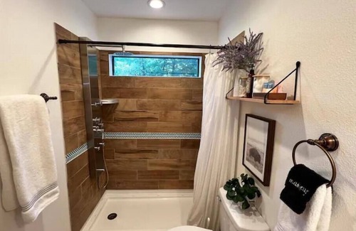 Escape from work and everyday to do lists. Our property is ideal for family gatherings and friend get-a-aways, but also suitable for a couples retreat, it offers a main cabin with a tiny house, that sleeps 4, available for an additional fee on 1.5 acres of beautiful tree-filled lake front space for you to roam, play, and be fully present in the company of your fellow cabin mates. There are no shortage of activities 2 standup paddle boards, 2 kayaks, zip line, ninja set and lots of yard games.