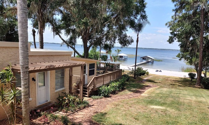 Lake Front Carriage House on Lake Jackson w Private Beach w/Boat Dock & 2 Kayaks | Cottage in Sebring