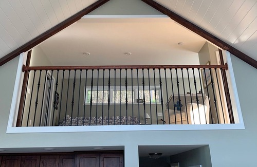 One bedroom has bunk beds, but three bedrooms are Queen size beds and the Master Loft bedroom has a Sleep Number King size bed. - see photos. One Frontgate blow up mattress is provided downstairs.