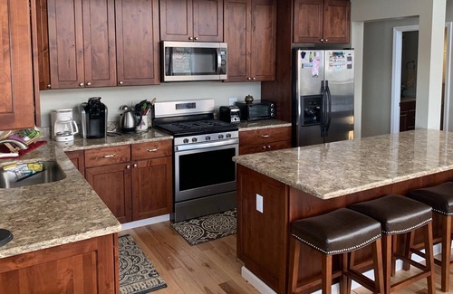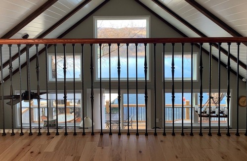 This beautiful 4 and 1/2 bedroom, 3 bath lakeside chalet was completely renovated inside and out in 2019. And it is a great vacation spot for families. As you walk into this open A-frame design you can feel your daily stresses melt away. The main level of our Lake house consists of the spacious open
