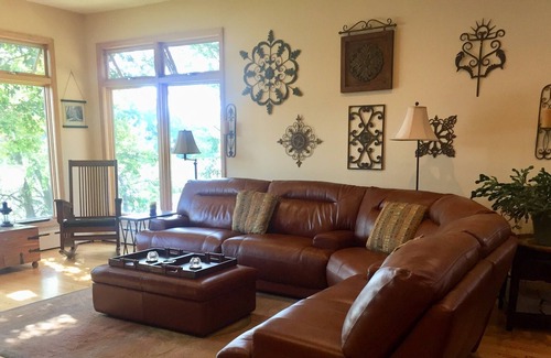Set on a private 17-acre freshwater Lake in the bustling village of Patchogue, Long Island, NY. The elevated stance of our mid-century craftsman-style home provides commanding views of sunrise, swans, and a vast variety of birds. With a total of four over sized bedrooms, three offering amazing direct waterfront views and privacy, comfort and convenience the Lake House offers accommodations for up to 10 guests. The Red Room, with its lake views, has a new queen bed with an en suite bathroom. The Blue room offers corner breezes, water views of over 180 degrees, a queen bed, and has a spacious private bathroom with a tub and shower just across the hall. An additional bonus room for larger families offers up to two queen beds (1 inflatable queen) suitable for young adults (over the age of 8 please) this room would share the main hall bathroom with the Blue room, or the red room (if they want to share ) The Master bedroom is on the main level with a wall of windows facing the lake, its warm hand-scraped hickory floors and restoration hardware sleigh bed provides a welcomed retreat. The Master BR has its own renovated modern bathroom, which includes 2 sinks, and a large glass shower, and plenty of storage. Our home has a lakefront dining room with a craftsman table that can accommodate up to 14 people, adjoining is a beautiful living room with plenty of seating to entertain. Our sunken den has floor-to-ceiling windows that face the lake and provides the best viewing of the abundant wildlife that visit us throughout the day. It has a large L shape leather sofa from where you can enjoy the views or simply watch TV on a rainy evening. Cooking in our open-style kitchen is relaxing and you can still entertain while cooking in our 40 ft waterfront room. Our bar height kitchen table offers seats for 4 or more people.