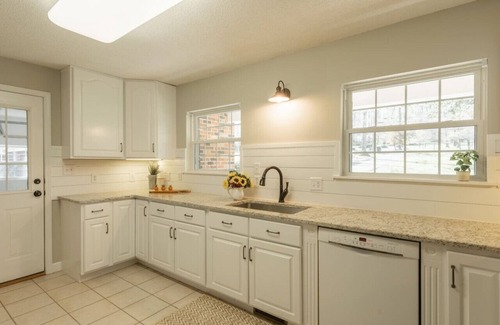 This home has 3 King Beds (ranging from memory foam, to a firm sleeper, depending on your preference), 1 Queen Bed, 1 large sectional couch that converts to a full bed, and 2 available air mattresses (a small one for kids/teens and one queen sized Intex Comfort for adults). The home also has two Living Areas, a Gourmet Kitchen, a Secondary Kitchenette, a large Dining area, Screened in Porch with outdoor seating, Hammock, Hot Tub, Fire Pit, Basketball Court, and a Dock! What's not to love? The expansive back yard stretches all the way to the water with plenty of room for outdoor entertaining and games or just room for kids to run. There is ample parking for cars, trailers, boats, etc. You will be provided with new corn hole boards and multiple complimentary kayaks! The house also comes equipped with EPB Fi-Speed 1 GIG Wi-Fi, which provides lag free gaming and lightening fast buffer-free video streaming. The backyard is perfect for relaxing in hammocks by the lake, so feel free to bring your personal enos and hang them in the variety of trees that the backyard has to offer.